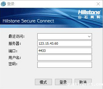 3. 运行Hillstone Secure Connect软件,出现下图登录界面。