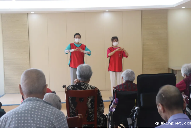 全场的氛围伴随着戏曲《大登殿》、《画扇面》而逐渐浓郁,一首《送别》更是令老人们感受到了志愿者们的深情。在老人们热情的掌声中,志愿者们又献上了精心学习的《手势舞》,快板《幸福歌》以及经典红歌《歌唱祖国》。在活跃的氛围中志愿者们开始与老人们聊天,交流民生热点和生活趣事,了解老人们的心声,令老人感到温暖。