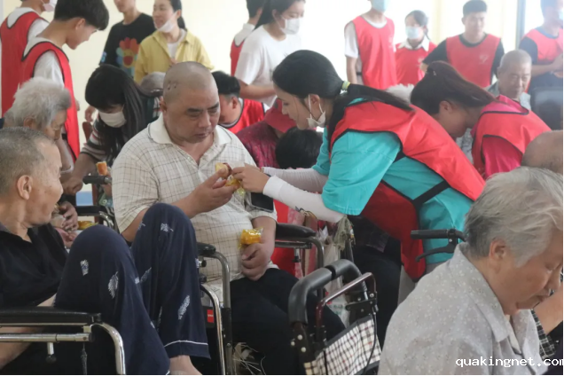 当志愿者们进入敬老院后为老人们送上了各自的心意,并热情的陪老人们聊着家常。而老人们用温柔的话语告诉同学们,在美好的新时代里,就应该把握当下,努力奋斗,不要辜负美好的青春年华。之后志愿者搀扶着老人们来到了广场上,为他们献上了精心准备的节目并与老人们进行互动,有经典红歌合唱、戏曲演唱、快板独奏等等。精彩纷呈的节目令老人们拍手称赞,纷纷跟着打起了节拍。