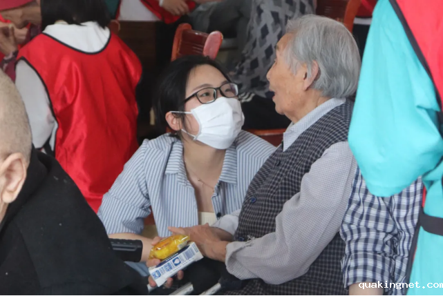 演出结束后,志愿者们来到老人身边为老人们送上自己的心意,嘘寒问暖,听老人们讲故事。同学们纯真的表情,亲切的话语,使老人们乐不可支,其乐融融。时间在不经意间流走,志愿者与老人们合影留念后把老人们搀扶回各自的房间并一一道别。此次活动也圆满结束。