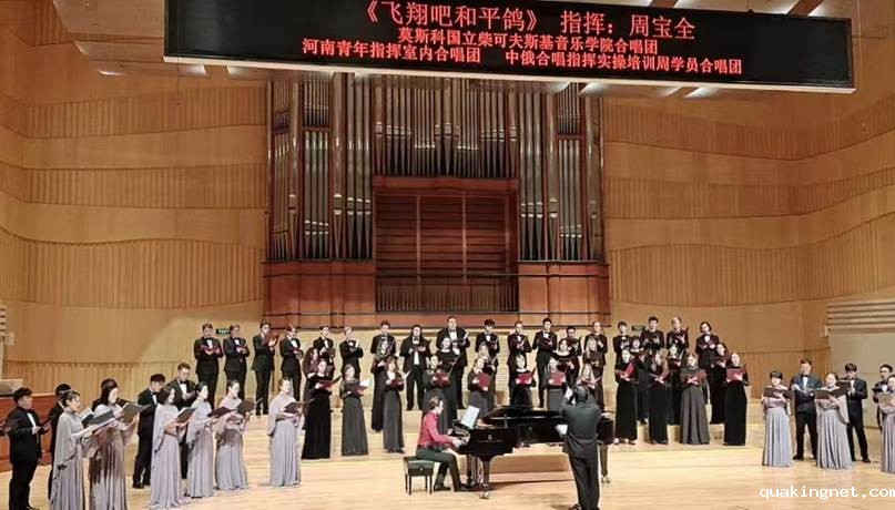 12月9日晚的河南艺术中心音乐厅,在“合唱指挥实操培训周结课汇报暨2024中俄合唱交流音乐会”上,米兰app官方版下载安装校长周宝全首曲登台,领衔指挥象征友谊和平的《飞翔吧,和平鸽》,中俄双方台上台下近200人共同产生了多元的、立体的人声交响。
