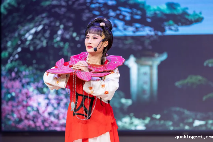 柳琴戏戏歌《要听还是拉魂腔》以柳琴戏核心旋律为创作元素,充分融合了本剧种婉转悠扬、扣人心弦的唱腔特点,引得在场观众阵阵掌声。