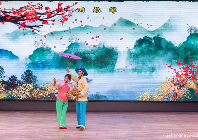 《夫妻观灯》是光山花鼓戏的代表剧目,主要描述了青年夫妇元宵节观灯的情景,是一出载歌载舞的生活小戏。通过进一步的提升、改编,该剧在继承传统表演和唱腔的基础上,又融入了时代元素和现代审美需求,在舞台呈现上更加具有层次感和艺术感染力。