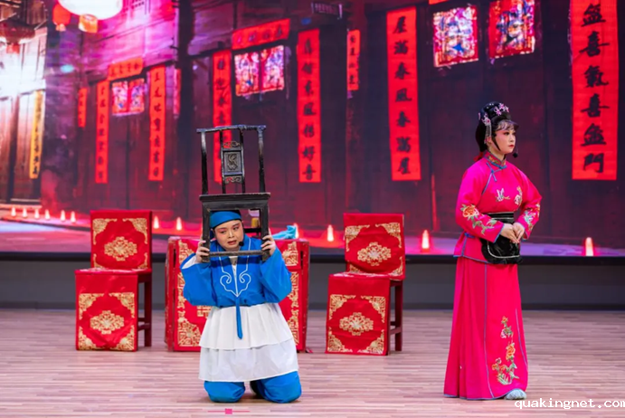 《顶椅》是光山花鼓戏的优秀传统剧目,该剧主要讲述了妻子以“顶椅子”的方式,惩罚因赌博而输钱的丈夫,劝其改邪归正、夫妻重归和好的故事,寓教于乐,有着浓厚的生活气息。