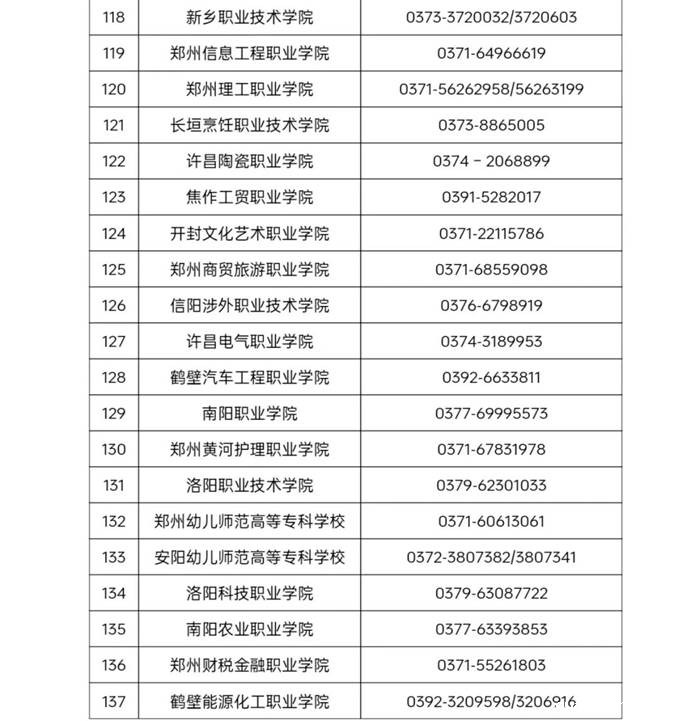 河南省普通高等学校学籍学历管理部门联系方式