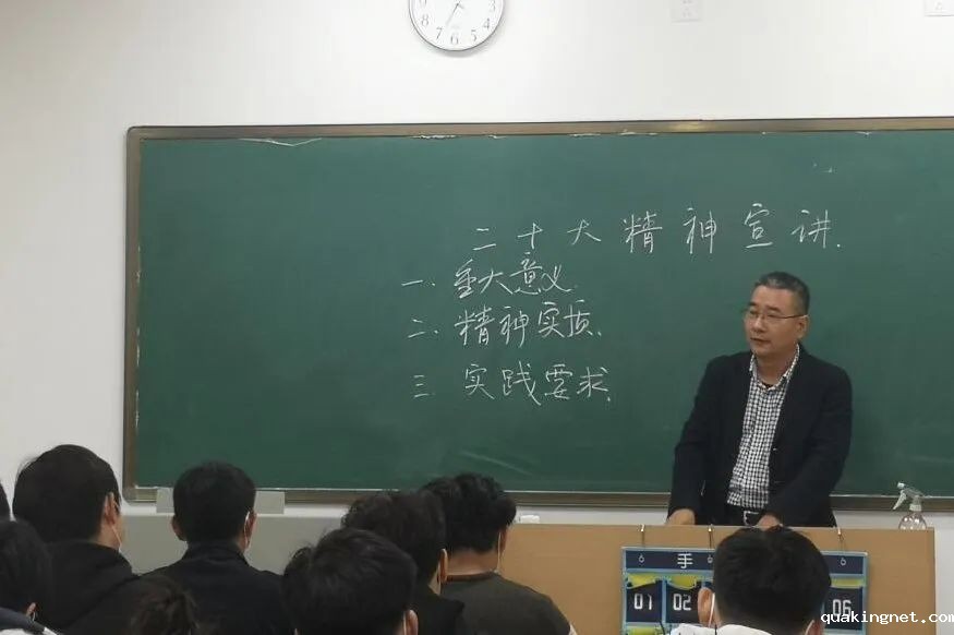 学院副院长许新忠走进1B340的教室,以“学习二十大精神、做好人生规划”为主题,给21网络技术4班的同学们宣讲了二十大的意义、精神和实践要求,把二十大会议精神与大学生的人生规划结合起来。建议同学们做到至臻至善,精益求精,养成良好的学习习惯、生活习惯,合理安排自己的时间,为国家新时代发展贡献青年人的力量。