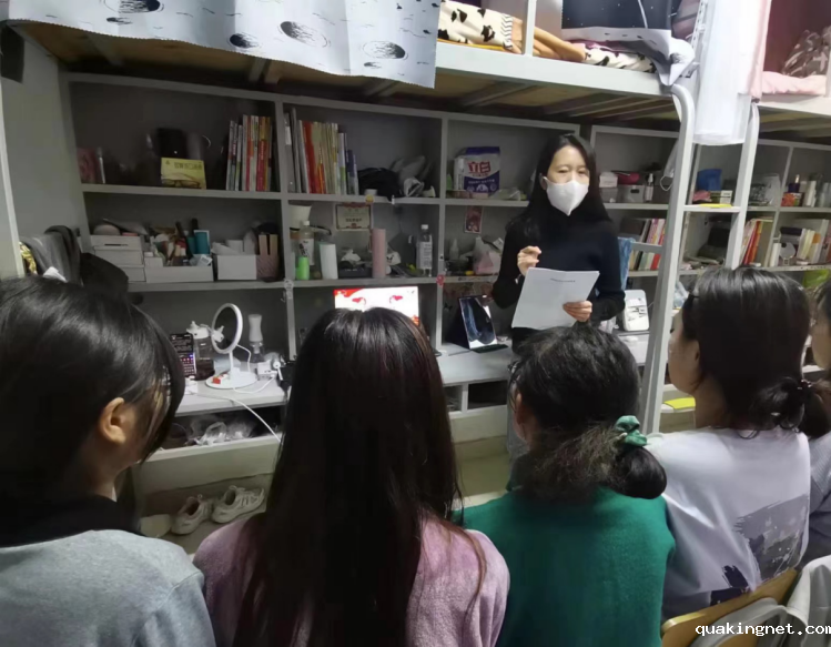 辅导员李玲玉老师,深入学生宿舍,将二十大会议精神传达到每一位学生,倡导大家积极学习二十大报告内容。